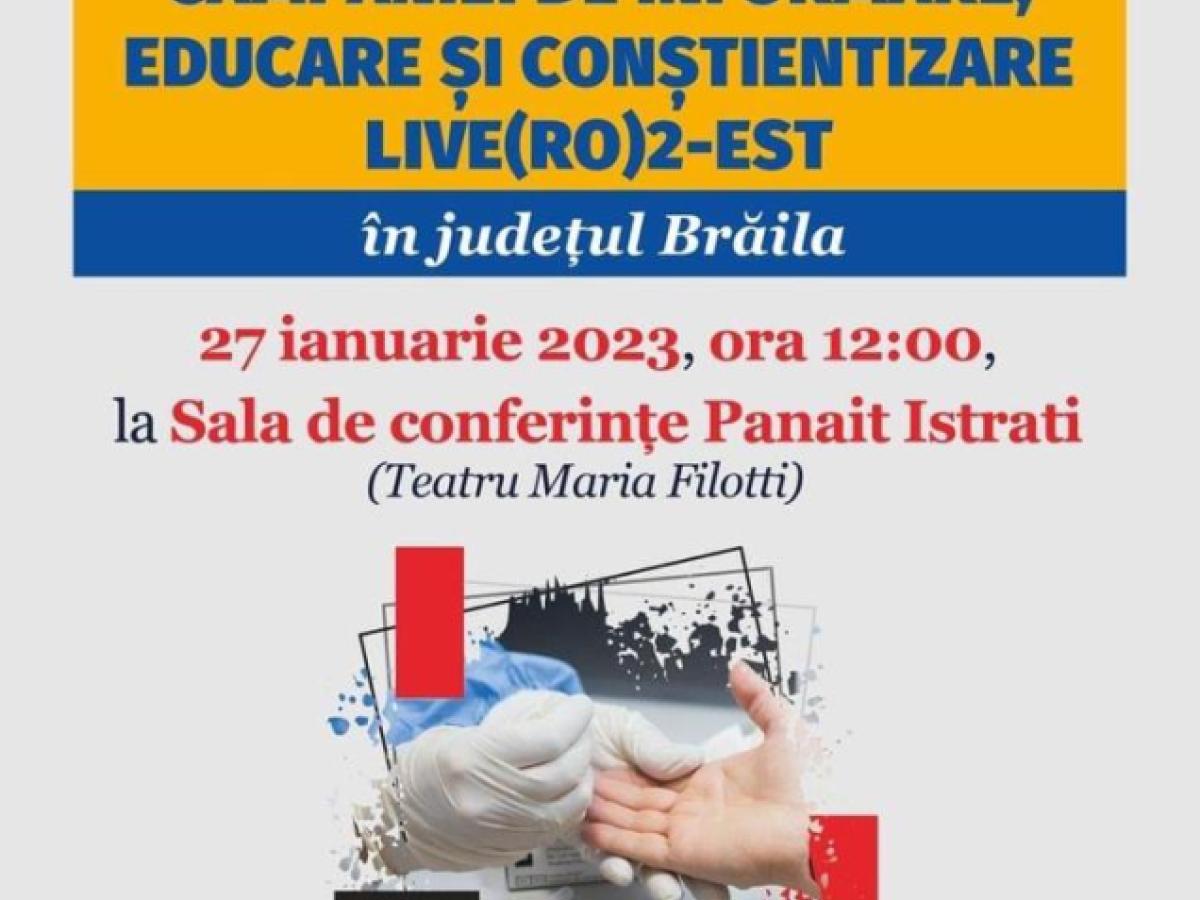 În faţa acestei oportunităţi, îndemnăm populaţia judeţului Brăila să se testeze pentru hepatitele virale B şi C. De asemenea, fac apel la medicii de familie din Brăila să se afilieze proiectului LIVE(RO)2-EST, pentru că ei constituie baza acestei campanii de informare, educare şi conştientizare în rândul populaţiei.