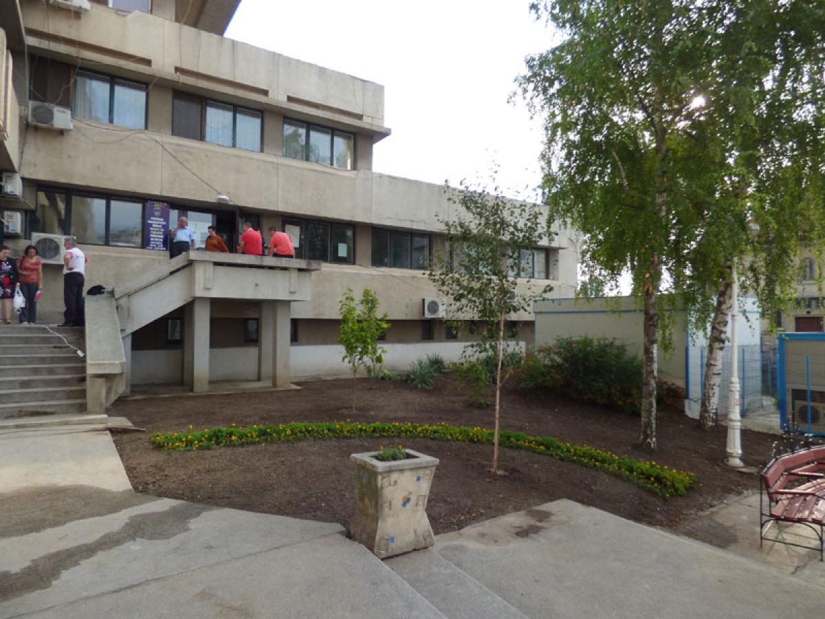 • copacii crescuţi haotic în spatele Palatului Administrativ au fost tăiaţi, iar zona a beneficiat de lucrări de amenajare peisagistică • totul în numai o zi!