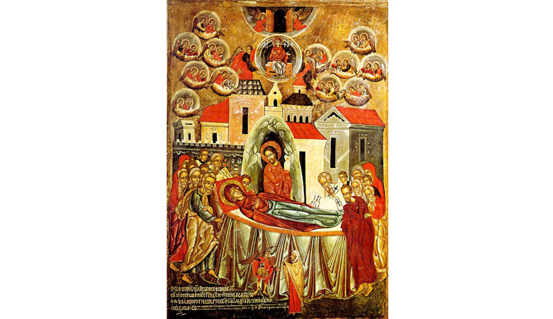 Sărbătoarea Adormirii Maicii Domnului este prăznuită an de an, cu pioşenie, în ziua de 15 august. Despre această sfântă sărbătoare nu găsim informaţii în Sfintele Evanghelii sau în Faptele Apostolilor, ci numai în Tradiţia Bisericii. Potrivit Tradiţiei, Maica Domnului a fost înştiinţată printr-un înger al Domnului de mutarea ei din această viaţă: “Acestea zice Fiul tău: Vremea este a muta pe maica Mea la Mine. Nu te teme de aceasta, ci primeşte cuvântul cu bucurie, de vreme ce vii la viaţa cea nemuritoare”. Iar după ce şi-a cerut iertare de la toţi, Fecioara Maria şi-a dat duhul. Domnul Iisus Hristos Însuşi S-a pogorât din ceruri pentru a primi în mâinile Sale sufletul cel sfânt al Maicii Domnului. Atunci s-au petrecut multe minuni: ochii orbilor s-au deschis, auzul surzilor le-a revenit, iar ologii şi bolnavii s-au vindecat.