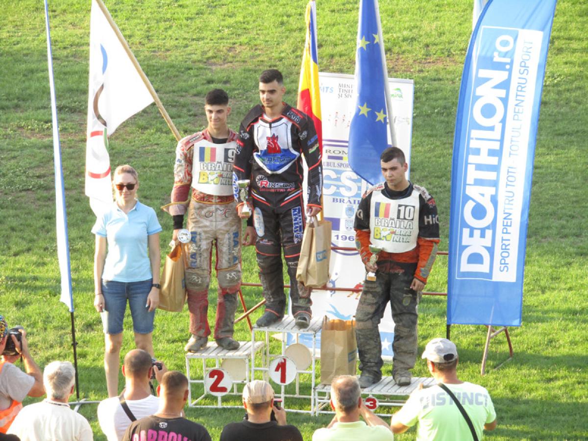 Adrian Gheorghe a acumulat 8 puncte, podiumul fiind completat de Andrei Popa, 7 puncte și Mark Barany, 6 puncte. Marian Gheorghe, reprezentantul clubului brăilean la această ediție a naționalelor de dirt track, a acumulat 4 puncte și s-a clasat pe poziția a 4-a în prima etapă. Locurile următoare au fost adjudecate de: Daniel Gheorghe (SSTA București), Aurelian Oaneș (MRM București) câte 3 puncte, Alexandru Nicolae (CSM Brăila) 2 puncte, Mircea Agrișan 1 punct. Florin Barabașu și Marius Crăciun au încheiat etapa cu zero puncte.