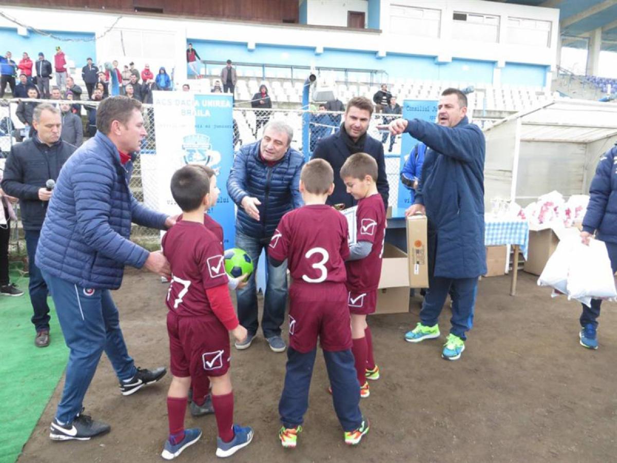 La finalul acţiunii de duminică cei doi invitaţi speciali, Adrian Mutu şi Mihai Stoichiţă, Alin Ilie, reprezentantul CJ Brăila, staff-ul de conducere al Daciei Unirea format din Valentin Avramescu şi Vasile Popa, preşedintele şi respectiv vicepreşedintele Consiliului de Administraţie, Auraş Braşoveanu, preşedintele executiv, Alin Pânzaru, antrenorul principal al clubului brăilean, Aurelian Stamate, şeful Centrului de copii şi juniori, le-au oferit copiilor prezenţi rechizite, dulciuri, mingi de fotbal, echipamente sportive.