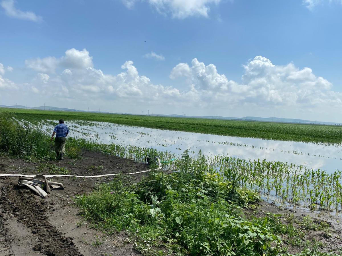 Capriciile vremii, cu extreme în aceeaşi zi - călduri toride şi apoi furtuni cu potop de apă -, au condus la situaţia paradoxală ca în paralel, pe câmpurile brăilene, să aibe loc acţiuni de desecare dar şi irigarea culturilor. În ceea ce priveşte evacuarea apei de pe cele 8.036 hectare afectate iniţial, încă se mai acţionează în zona Vădeni, într-o depresiune de la Silistraru şi la Batogu. Iar dacă e să ne referim la irigat, deja culturile primesc apă la Urleasca şi la Oprişeneşti.