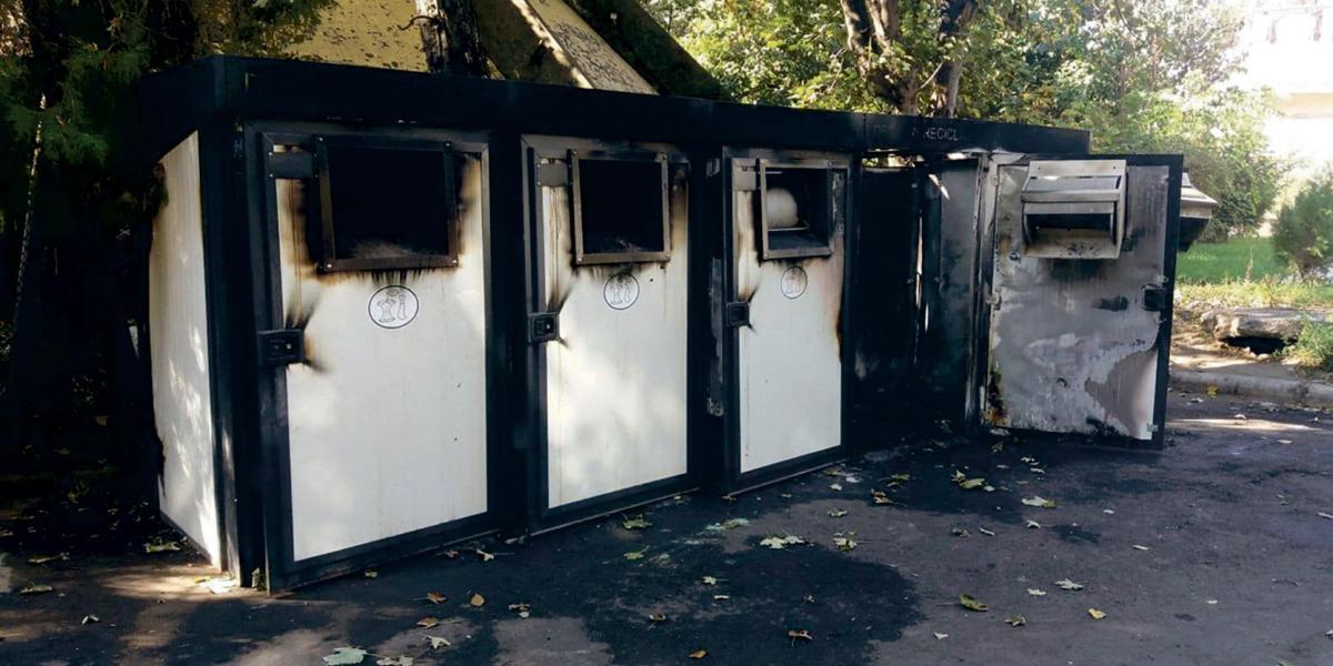 Modulele alea de tip container montate de Primăria Brăila au început să fie vandalizate/incendiate de diverşi brăileni. S-ar putea să fie vorba despre oameni ai străzii, de indivizi aflaţi în spatele centrelor de colectare a pet-urilor sau de giboni nesimţiţi, care se simt bine făcând rău.