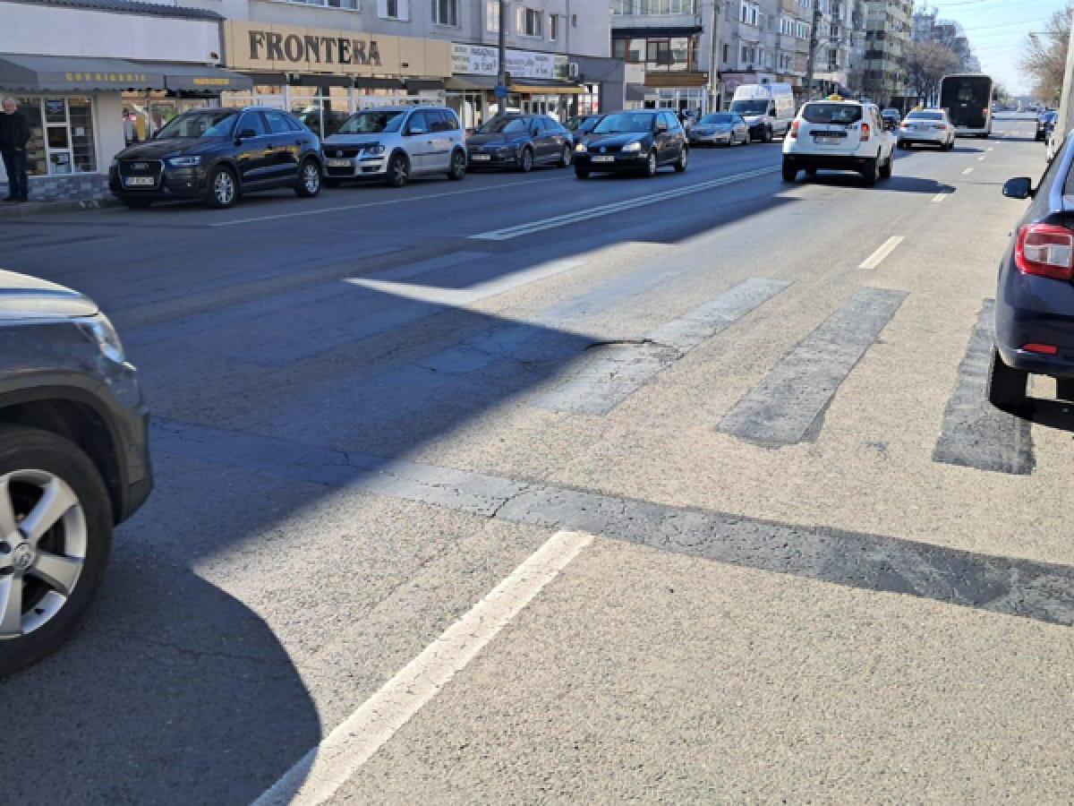 • la solicitarea Poliției Rutiere, una dintre cele două treceri din dreptul Școlii ”Fănuș Neagu” a fost mutată câțiva zeci de metri mai încolo • Poliția susține că astfel s-ar fluidiza traficul și s-ar îmbunătăți siguranța pietonilor • conducerea Primăriei nu a fost de acord, însă, cu această măsură • ”Nu putem pune în pericol elevii pentru ca o trecere de pietoni de lângă o școală să se mute lângă un supermarket”, a transmis primarul Marian Dragomir • în consecință, echipa SUPAGL care vopsise cu negru vechea trecere a refăcut dungile albe de pe carosabil