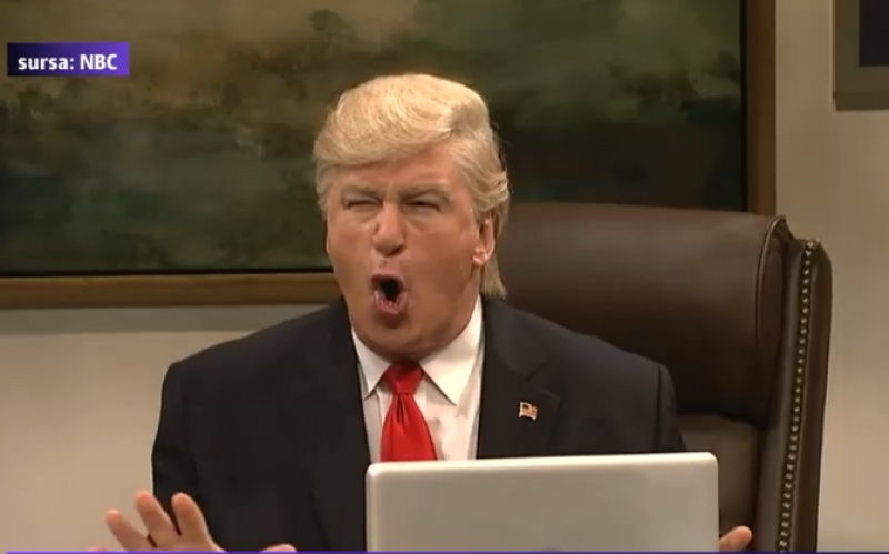 Donald Trump a criticat în mai multe ocazii maniera în care Alec Baldwin îl interpretează în emisiunea ”Saturday Night Live”. Duminică, viitorul preşedinte al Statelor Unite a publicat pe Twitter următorul mesaj: ”Tocmai am încercat să mă uit la «Saturday Night Live» - e de neprivit! Complet părtinitor, deloc amuzant, iar interpretarea lui Baldwin nu putea să devină mai proastă de atât. E trist”.