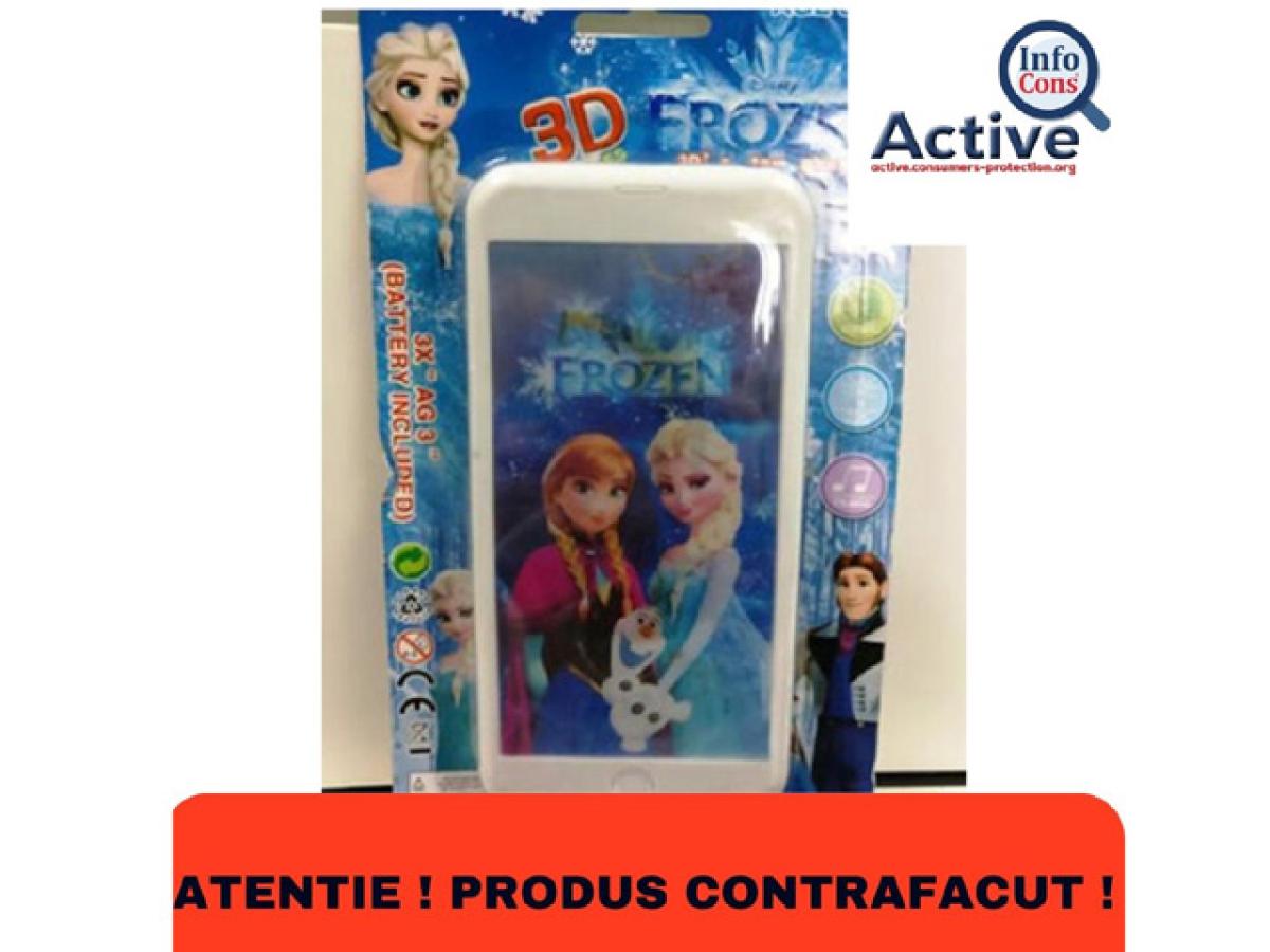 Următoarele produse contrafăcute sunt tot jucării (personaje Frozen). La acestea, compartimentul bateriei și bateriile buton din jucărie sunt ușor accesibile; un copil mic poate pune bateriile în gură, ceea ce poate provoca sufocare sau deteriorarea tractului gastrointestinal, dacă sunt înghițite. De asemenea, lipiturile din jucărie conțin prea mult plumb și cadmiu (valori măsurate până la: 51% și respectiv 0,15% din greutate). Plumbul și cadmiul prezintă un risc și pentru mediu, în concluzie, produsul nu respectă cerințele Directivei privind siguranța jucăriilor, standardului european relevant EN 62115 și Directivei Comisiei privind restricționarea utilizării anumitor substanțe periculoase în echipamentele electrice și electronice (Directiva RoHS 2).