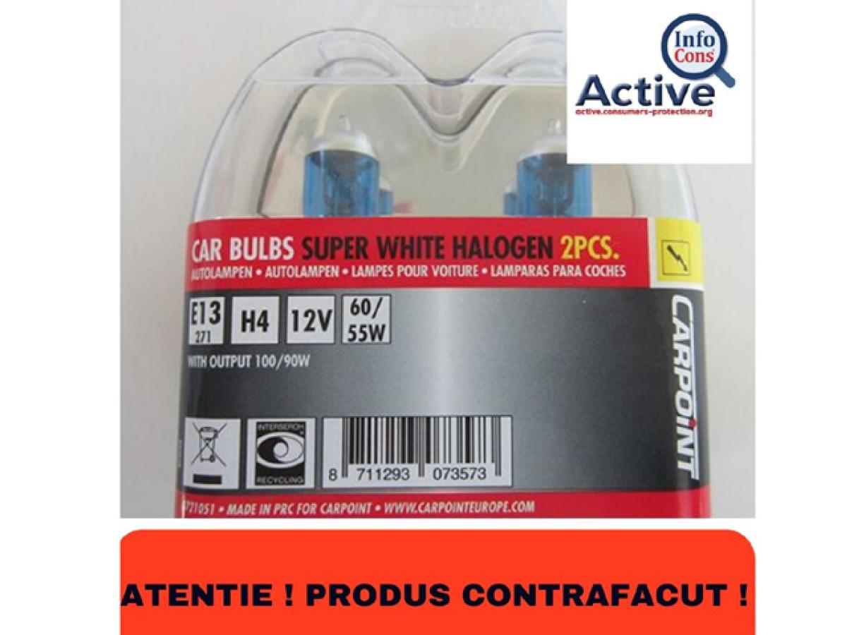 Pachetul de 2 becuri cu halogen H4, produs care se vinde online, în special prin Amazon, este cel de-al șaptelea de pe „lista neagră” a InfoCons. „Deoarece certificatul de aprobare este contrafăcut, conformitatea produsului nu a putut fi aprobată de către autoritatea competentă. În consecință, lumina emisă ar putea fi prea puternică și poate orbi ochii celorlalți șoferi sau prea slabă, iar șoferul poate să nu vadă bine drumul, crescând, astfel, riscul unui accident. Certificatul furnizat de importator (al produsului descris) era contrafăcut și menționa în mod fals un producător din Taiwan”, precizează sursa citată.