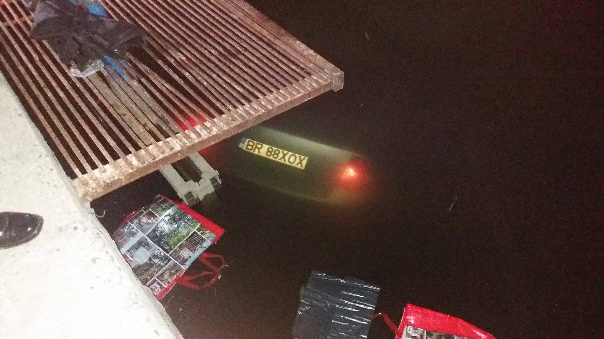 Desfăşurare impresionantă de forţe, azi noapte, pe Șoseaua Dig Brăila – Galați. Un șofer imprudent a pierdut controlul volanului și a sărit cu maşina într-un canal de irigaţii de lângă stadia de epurare.
