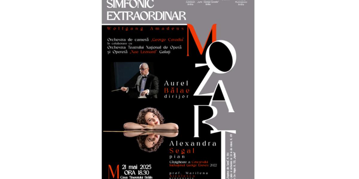 În cadrul concertului, sub bagheta elegantă și rafinată a dirijorului Aurel Bălae, Orchestra de Cameră „George Cavadia” Brăila, în colaborare cu Orchestra Teatrului Național de Operă și Operetă „Nae Leonard” din Galați, va aduce în prim-plan trei capodopere ale compozitorului vienez Wolfgang Amadeus Mozart: Uvertura operei „Răpirea din Serai”, Concertul pentru pian și orchestră nr. 24 în do minor, K. 491, și monumentala Simfonie nr. 41 în Do Major, „Jupiter”.