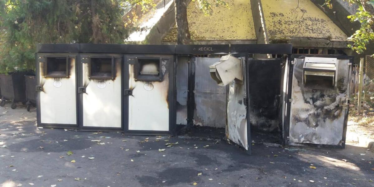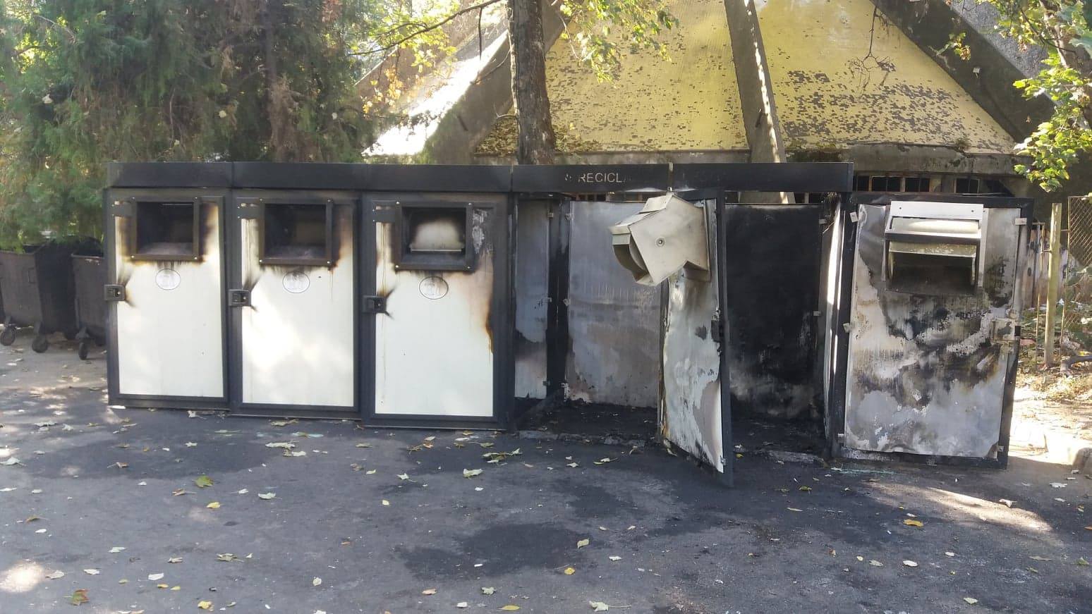 STIRE INITIALA: Alt modul de colectare selectivă distrus prin incendiere. Suspectul, un “boschetar” supărat că nu mai poate aduna PET-uri