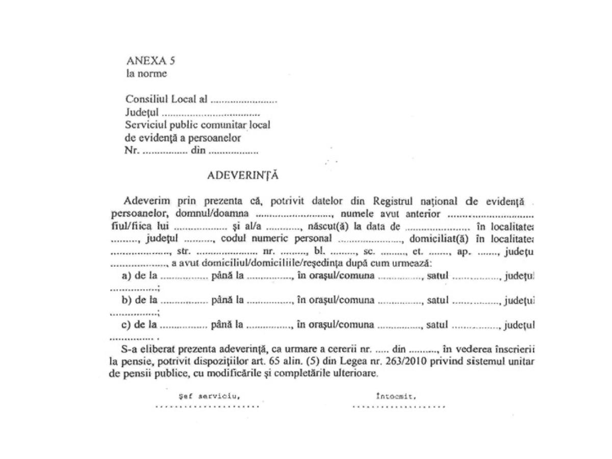 Menționăm că în adeverința respectivă eliberată de Serviciul de Evidență al populației pe raza căruia locuiește solicitantul se vor preciza cu exactitate perioadele de domiciliu/reședință în localitățile care se încadrează în lege. În acest sens directorul Rîndunică a adăugat: "În vederea aplicării corecte a prevederilor art. 65 alin.5 din Legea nr. 263/2010 privind sistemul unitar de pensii publice, așa cum a fost modificat prin Legea nr. 161/2022, urmează a se comunica de către Agenția Națională de Cadastru și Publicitate Imobiliară din cadrul Ministerului Dezvoltării Regionale și Administrației Publice lista localităților cuprinse în zona de 8 km în jurul localității în care se află situl contaminat".