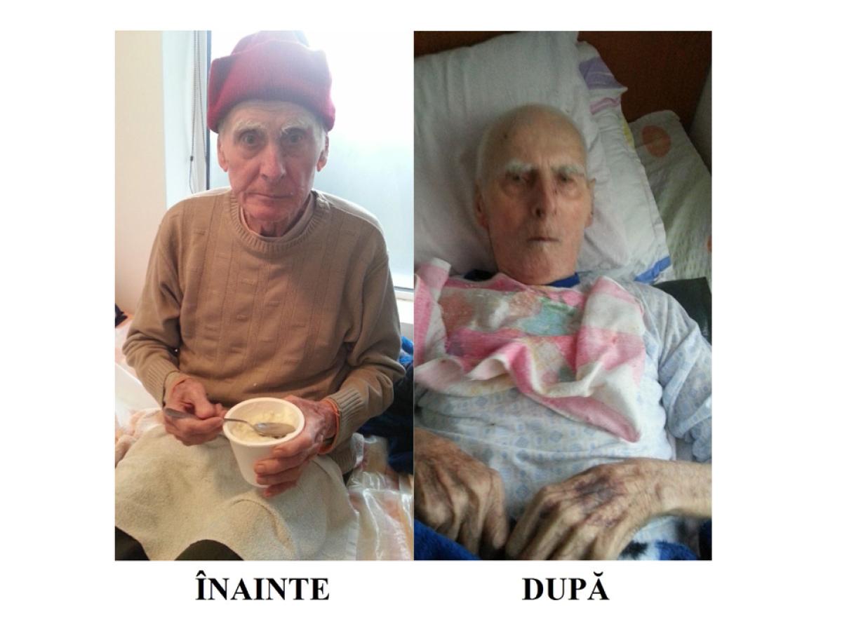Reamintim că brăileanul Ion Vodă ne-a sesizat faptul că şi-a internat tatăl la căminul “Sfântul Dumitru” deţinut de Asociaţia “Aura 2010”, în urmă cu opt luni. Atunci, vârstnicul mergea pe picioarele sale, vorbea şi era vesel. În urmă cu două luni, povesteşte fiul, bătrânul s-a schimbat radical: a căzut la pat, nu a mai vorbit şi a slăbit foarte mult. I-au apărut şi escare la piciorul drept, iar în timp s-au infectat. În ultimă fază, familia a luat decizia să-l ducă la Spitalul Judeţean pentru operaţie, lucru sugerat şi de către medicul Steluţa Nedelcu. Numai că bătrânul s-a stins din viaţă la câteva ore de la internare, din cauza stării extrem de grave în care a fost adus de la căminul “Sfântul Dumitru” al Asociaţiei “Aura 2010”.