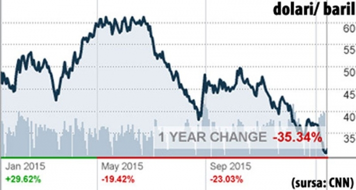 Această scădere a prețului benzinei la pompă se datorează degringoladei cotației petrolului. Începând din vara lui 2014 prețul barilului de petrol în SUA a început să scadă de la 105 dolari per baril la 29 de dolari per baril în prezent. În România, prețul la pompe pentru benzina de 95 a scăzut cu aproximativ 2 lei/ litru în același interval de timp, ajungând la 4,60-4,80 lei/ litru – mai mult decât dublu faţă de benzina nord-americană din cauza suprataxării.