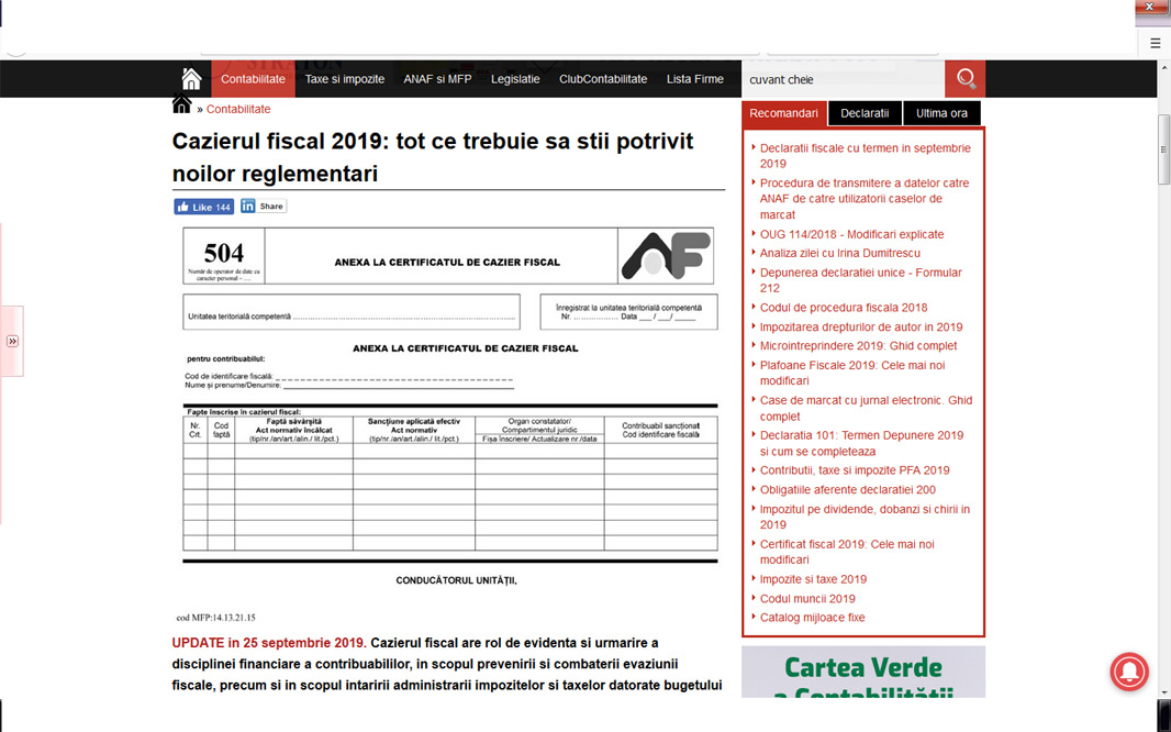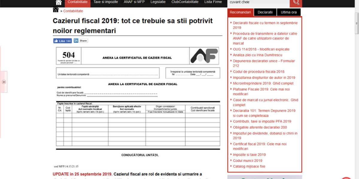 • reprezentanţii fiscali simplifică procedurile pentru eliberarea cazierului fiscal •mai nou, acesta se poate obţine printr-un simplu click