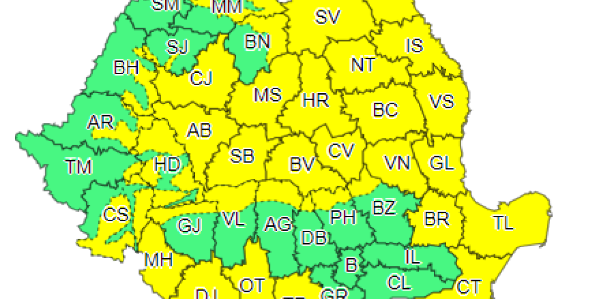 Totodată, a fost emis un cod galben de vânt puternic, pentru mâine între orele 10 – 23. Zonele afectate : Oltenia, Moldova, Dobrogea, local Muntenia şi Transilvania, precum şi zona montană