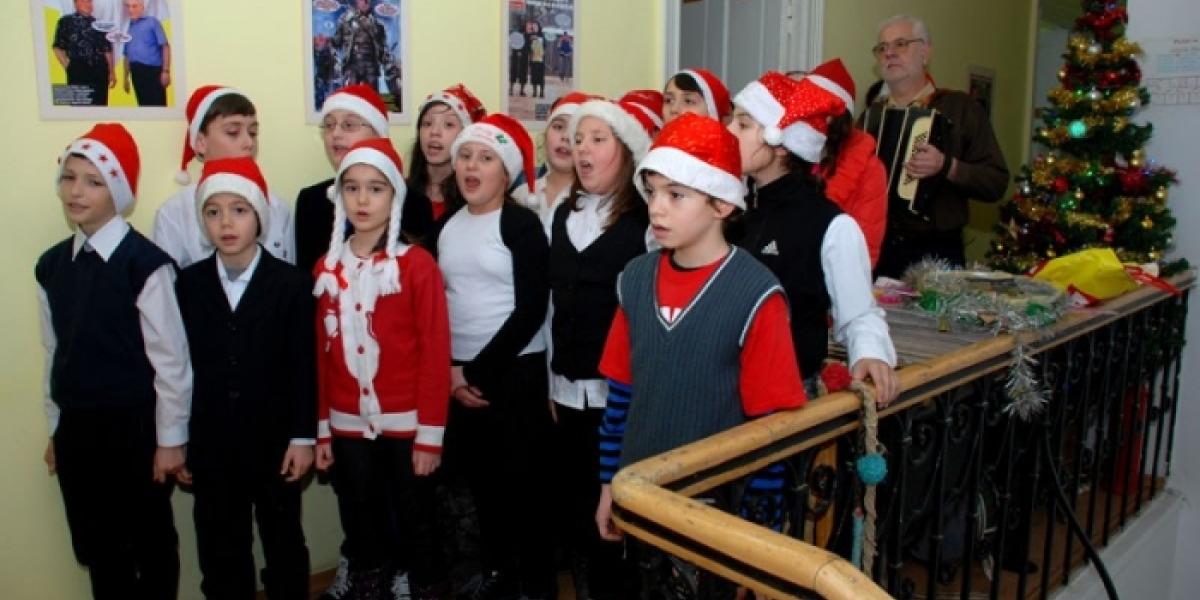 Micuţii au venit să ureze ziariştilor sărbători fericite şi au făcut acest lucru interpretând mai multe colinde şi cântece despre iarnă şi copilărie. Pe holurile instituţiei au răsunat acorduri cunoscute: "Sus boieri, nu mai dormiţi!", "Domn, Domn să-nălţăm!", "Astăzi s-a născut Hristos!", "Steaua", "Florile dalbe", "Omul de zăpadă", "Colindiţa", "Capra". Bucuroşi de darul pe care l-au făcut şi de cadourile primite, copiii şi-au încheiat micul spectacol cu "Pluguşorul", moment care a fost acompaniat, spre bucuria tuturor şi de buhai.