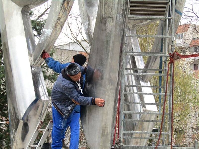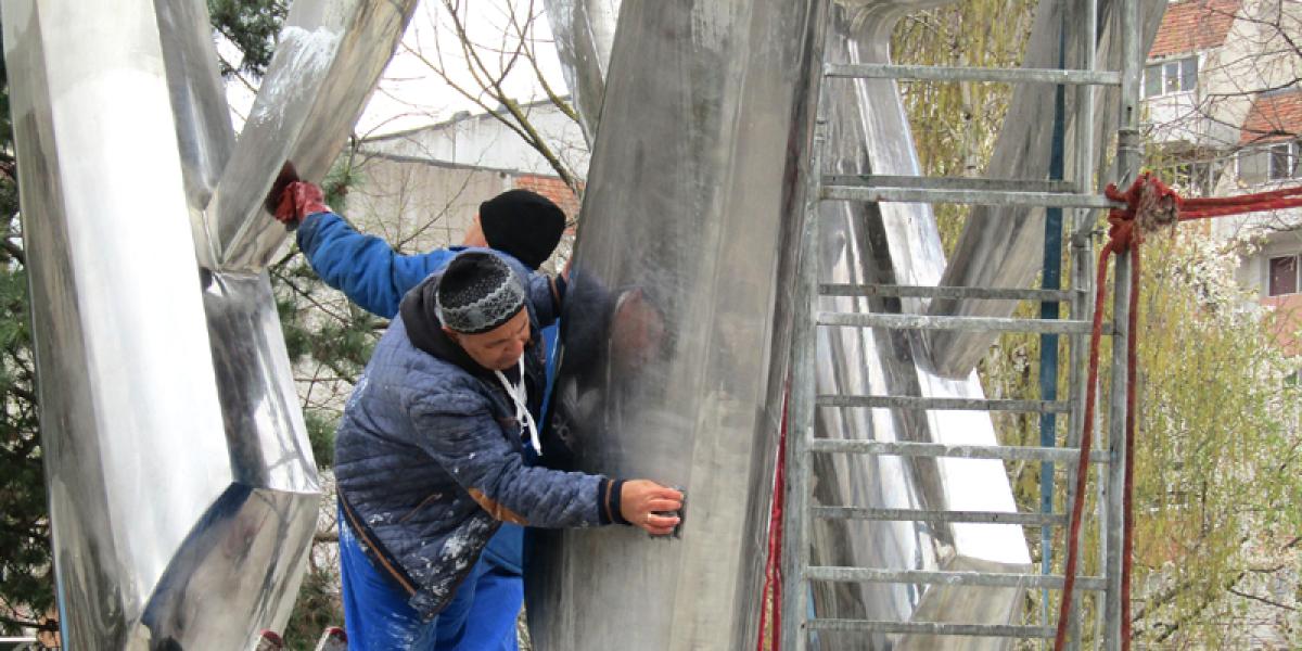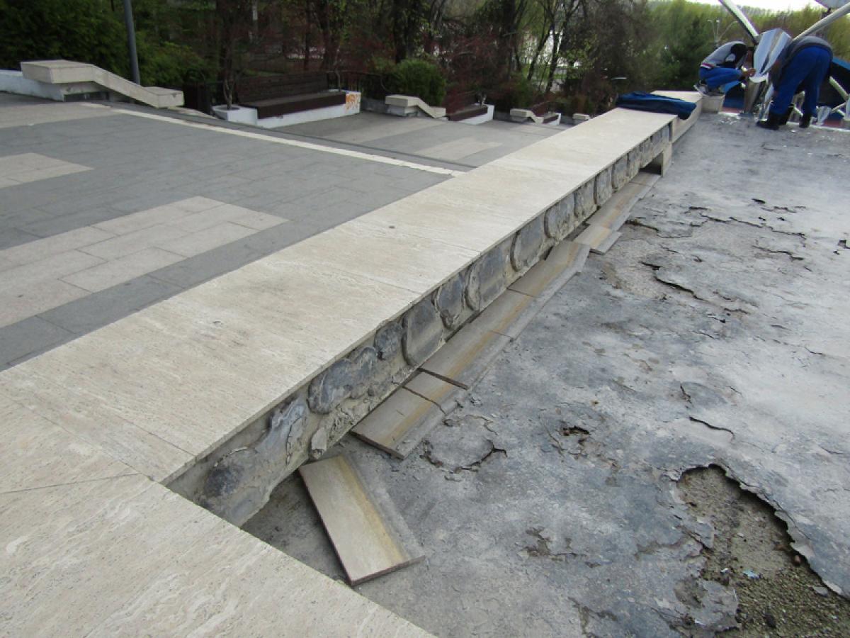 • lucrările ar trebui să fie gata până la 1 mai, când se intenționează repornirea fântânii • se curăță cu acid citric piesele de inox și urmează să fie repuse pe poziție plăcile de travertin desprinse de pe soclu și de pe bazine • se caută soluții și pentru refacerea corespunzătoare a hidroizolației bazinelor