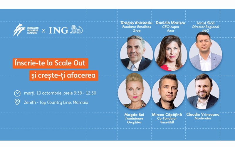 Antreprenorii din zona de Sud-Est a țării (județele Constanța, Brăila, Buzău, Galați, Tulcea și Vrancea) sunt invitați la Constanța, cu ocazia lansării ScaleOut 4x10 – program de scalare organizat de Fundația Romanian Business Leaders (RBL) și ING Bank România.