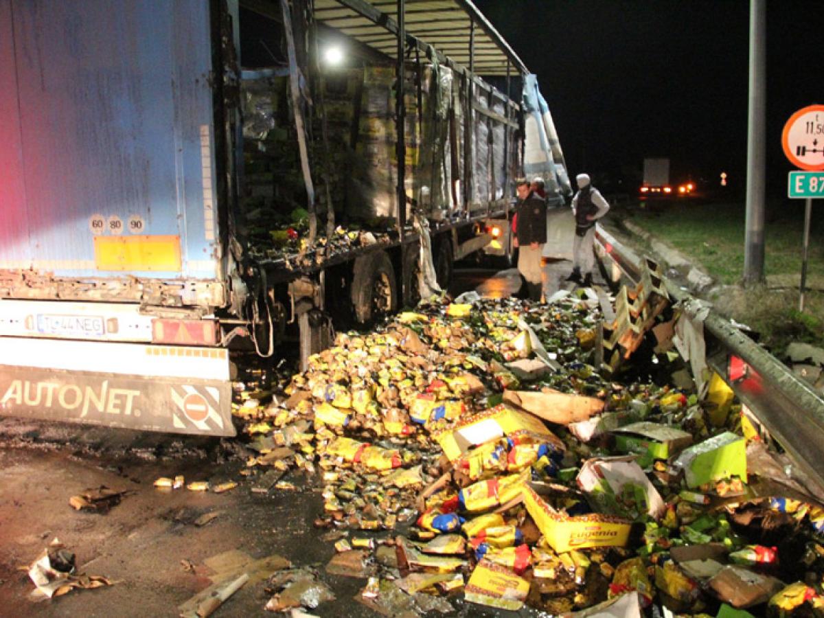 Luni, la ora 22.00, pompierii au fost solicitați să intervină la un alt incendiu, de această dată pe Șoseaua de Centură, unde luase foc un autocamion care transporta biscuiți. Au ars cinci paleți cu marfă, cauza probabilă de producere a incendiului fiind frecarea mecanică la sistemul de rulare a camionului.