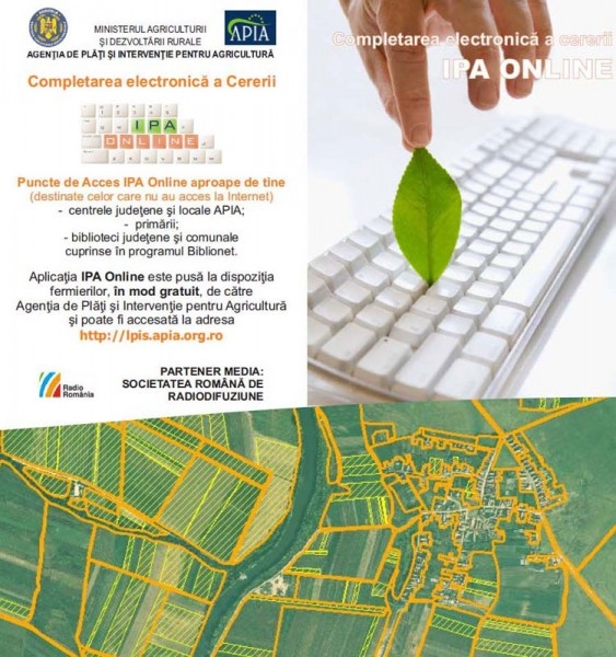 "Un element important şi în Campania 2015 este aplicaţia IPA Online, prin intermediul căreia fermierii deja înregistraţi la APIA în campaniile precedente şi care intenţionează să solicite sprijin pe suprafaţă în anul 2015, prin acces la internet, pot să completeze electronic cererea unică de plată. Fermierii care nu au mai depus cereri de plată în anii trecuţi, trebuie mai întâi să se înregistreze la APIA în Registrul Unic de Identificare şi apoi pot depune cerere unică de plată prin intermediul aplicaţiei IPA online", ne-a declarat directorul executiv al APIA Brăila, Daniela Militaru. De asemenea, sursa citată a mai adăugat că, în urma solicitărilor adresate Comisiei Europene de mai multe state membre, comisarul european Phil Hogan a propus posibilitatea prelungirii termenului final de depunere a cererilor unice de plată până la data de 15 iunie 2015, fără penalizări.