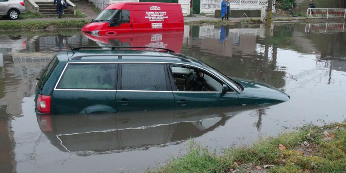 • pentru a doua oară în acest an, pasajul de sub podul de cale ferată de pe Şos. Râmnicu Sărat s-a inundat, după ploaia de luni dimineaţă • explicaţia oficială este că staţia de pompare care ar fi trebuit să asigure evacuarea apei nu a funcţionat din cauza unei pene de curent • este ciudat, însă, cum în ultimii ani, de când s-a dat în folosinţă noul canal colector, nu au mai fost astfel de inundaţii, iar anul acesta se întâmplă deja a doua oară • o şoferiţă surprinsă de şuvoaie a văzut moartea cu ochii, iar mai multe maşini au fost avariate • dacă se vor confirma prognozele care anunţă alte ploi abundente, Primăria va restricţiona traficul în zonă