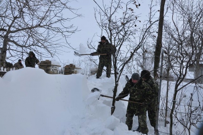Soldaţii muncesc de zor la deblocarea căilor de acces şi la deszăpezirea gospodăriilor celor care nu se pot descurca singuri din diverse motive, iar vremea pare să ţină cu ei.