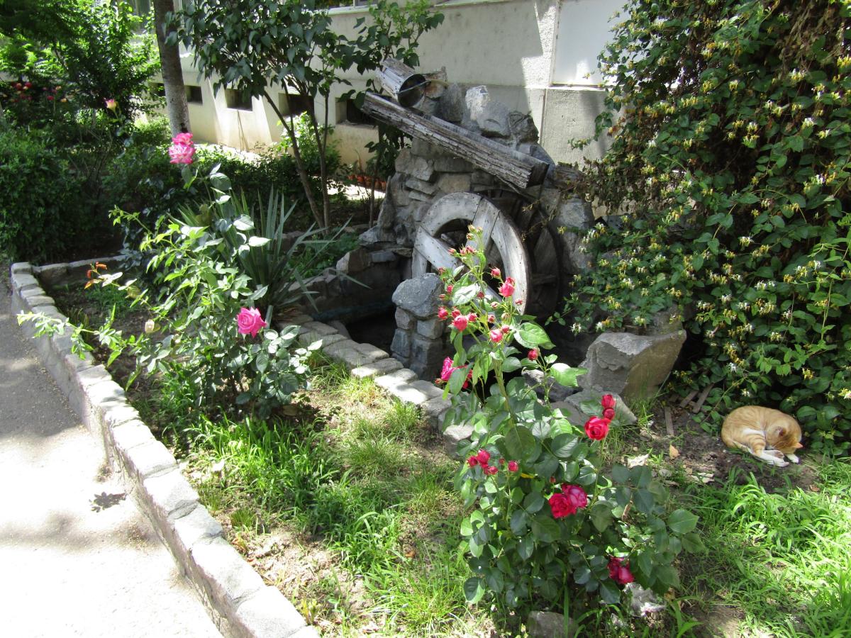 Însă lucrurile nu se opresc aici, deoarece, acolo unde există şi imaginaţie, dai de aspecte cu totul inedite , chiar unicat. Cum am întâlnit, de exemplu, la blocul A2 de pe Bdul. Independenţei. Aici, o florărie îşi semnalează prezenţa printr-o “cascadă din flori” (care se se poate asemăna şi cu un “corn al abundenţei”), iar la câţiva paşi distanţă atrag atenţia nu doar spaţiile pline de flori, dar şi două lucrări care aşteaptă apa necesară: o mini fântână arteziană şi o “roată a grădinarului” inspirată din ceea ce utilizau, cândva, legumicultorii.