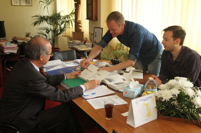 Karl şi Sebastian ne-au rugat să mediem un dialog între ei şi primarul Aurel Simionescu, pentru a vedea care este reacţia acestuia în privinţa proiectului lor. Contactat de redactorii noştri, primarul a răspuns pozitiv, astfel că ieri, i-am făcut o vizită la birou alături de cei doi arhitecţi în devenire din Norvegia. Aceştia i-au transmis edilului şef că multe clădiri importante din Brăila sunt ignorate din punct de vedere arhitectural. Totodată, studenţii au încercat să obţină câteva poveşti despre Palatul Administrativ. "Palatul Administrativ a fost ridicat în 1977. Prima clădire ridicată a fost Palatul Agriculturii, a urmat Palatul Administrativ, Hotelul şi Casa Tineretului. Această clădire are o poveste interesantă. Când a fost proiectată iniţial, trebuia să mai aibă un etaj, ceea ce i-ar fi schimbat aproape complet forma actuală. Cu toate acestea, după cutremurul din 1974 - care a fost foarte de mare şi a creat multe probleme - , în Bucureşti s-au prăbuşit blocuri, case. Şi cum România avea un buget limitat, construcţia acestei clădiri a fost oprită", a declarat Simionescu, explicând că în cele din urmă lucrurile au decurs bine, deoarece Palatul Administrativ a fost ulterior comparat cu un vapor. Întrebat de ce brăilenii au o opinie negativă în privinţa clădirilor din perioada 1960 - 1989, Simionescu a ţinut să precizeze că la vremea în care acestea au fost ridicate lucrurile stăteau complet diferit. "Când oamenii vorbesc despre regimul trecut cred că poate fi comparat într-un fel cu o discuţie despre un film. Adică mi-a plăcut un film sau nu... Impresia generală este «nu mi-a plăcut filmul». Dar în 1964 când a fost construit primul bloc în cartierul Hipodrom toată lumea îşi dorea să trăiască acolo. Era o zonă importantă. Un astfel de apartament era încălzit, era comod, existau facilităţi. Acum, după 70 de ani, este o altă discuţie. Sunt alte probleme în ziua de azi. Oamenii le consideră mult prea mici. Arhitectura nu mai poate fi considerată una modernă etc", a mai completat edilul şef.