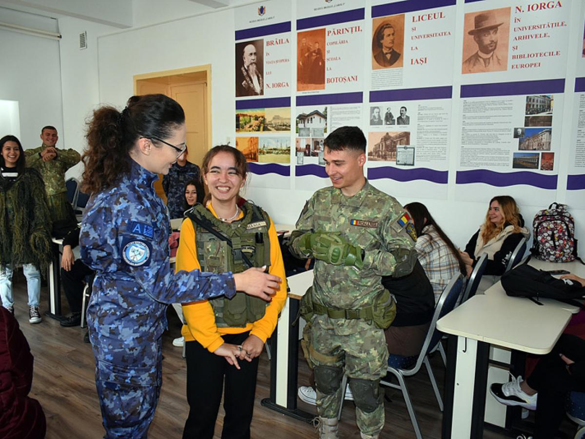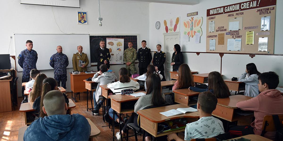 Militarii Flotilei Fluviale "Mihail Kogălniceanu", unitate de elită a Armatei Române, încartiruită la Brăila, au întreprins luni, 17 octombrie, o vizită la Liceul Teoretic "Nicolae Iorga", precum și la Școala Gimnazială "Vasile Alecsandri", ambele din municipiul Brăila, în cadrul Proiectului național "Armata în școli".