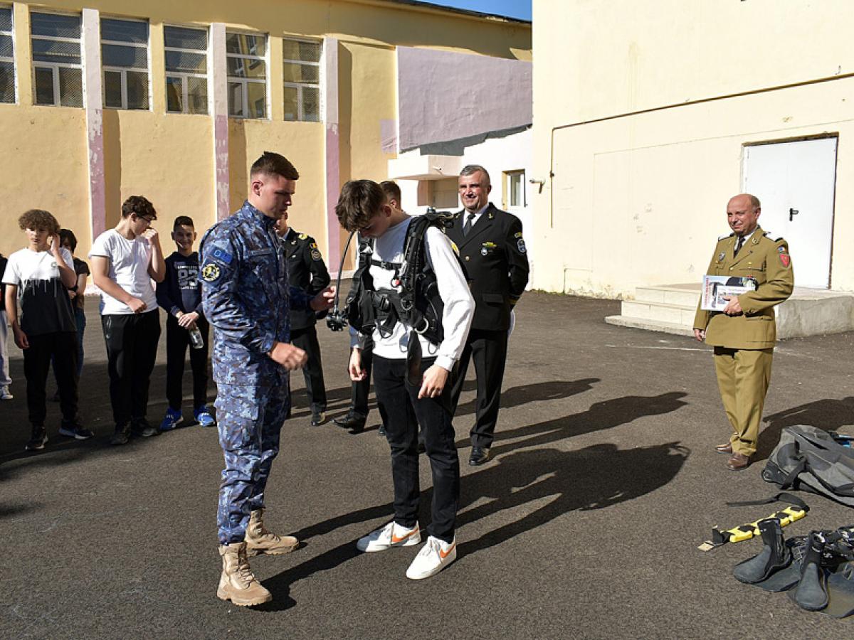 • luni, 17 octombrie a.c., echipe formate din marinari militari, elevi ai instituțiilor de învățământ militar de marină și reprezentanți ai Birourilor informare - recrutare le-au prezentat elevilor de la Liceul Teoretic "Nicolae Iorga" și de la Școala Gimnazială "Vasile Alecsandri" informații despre Ziua Armatei României și despre cariera militară