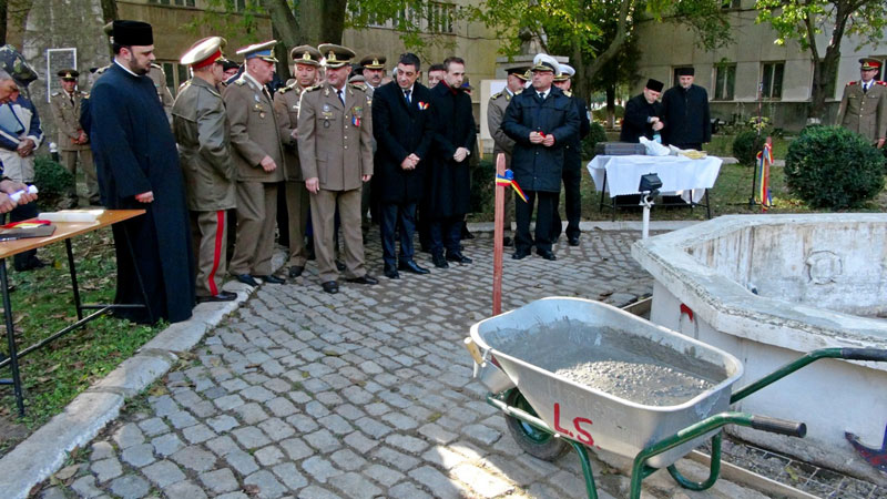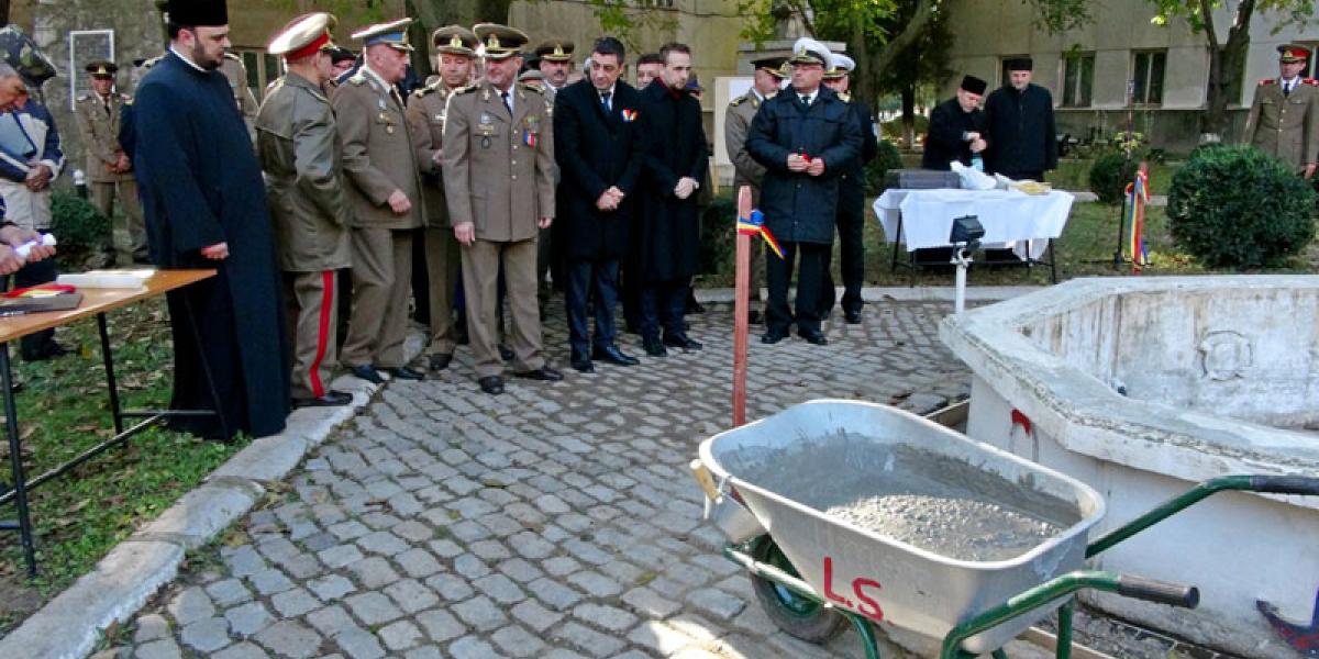 Ieri, oficialităţile militare şi civile din Garnizoana Brăila au inaugurat oficial lucrările, turnând câte un cancioc cu mortar la postamentul fântânii arteziene din centrul ansamblului comemorativ. Ceremonia se numără printre evenimentele organizate la Brăila în preajma Zilei Armatei României, care se va serba pe 25 octombrie. Au fost prezenţi, pe lângă comandantul Garnizoanei Brăila, col. Gheorghe Soare şi comandantul Cazărmii 307, col. Marian Grigore, foşti şi actuali comandanţi militari din garnizonă, printre civilii prezenţi numărându-se preşedintele Consiliului Judeţean, Francisk Chiriac, viceprimarul Alexandru Jantea sau directorul Muzeului Brăila, Ionel Cândea.