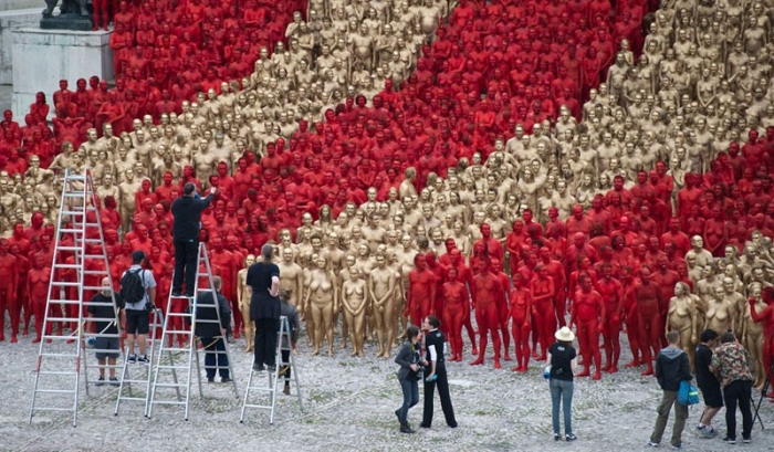 Fotograful american Spencer Tunick, celebru pentru fotografiile sale cu nudişti, a convins peste 6.000 de persoane să pozeze dezbrăcate în faţa Parlamentului columbian din Bogota, pentru a transmite un mesaj de pace în această ţară sfâşiată de peste jumătate de secol de conflict armat. În jurul orei locale 3 dimineaţa, primii participanţi au început să se adune în piaţa Bolivar, din centrul capitalei columbiene, în pofida frigului. Într-un interviu, Spencer Tunick, a cărei ultimă fotografie cu nudişti a avut drept locaţie oraşul Sydney, a explicat că prin fotografiile sale a dorit să transmită „un mesaj de egalitate, pace şi unitate". Fotografiile vor fi expuse la Muzeul de Artă Modernă din Bogota.