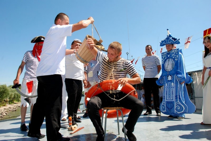 Jocurile marinăreşti au fost patronate de zeul Neptun, întruchipat, ca în fiecare an, cu aceeaşi energie debordantă, de actorul Florin Chirpac. Sub supravegherea zeului, a primit botezul apei un tânăr "ghiborţ", înrolat recent în Flotila Fluvială, care a fost săpunit bine, "bărbierit" cu un ditamai briciul din lemn, apoi udat din cap până în picioare, ca să ştie că de-acum apa o să fie viaţa lui.