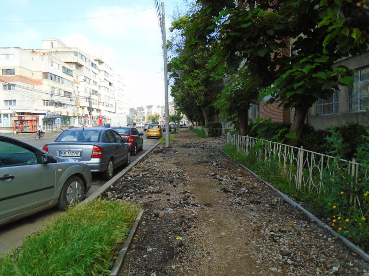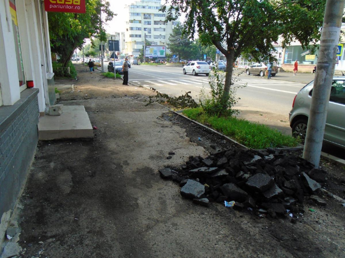 Dacă asfaltarea Bulevardului Alexandru Ioan Cuza - importantă arteră a Brăilei - începută în prima parte a lunii iunie, merge bine, în partea de nord a orașului lucrurile par să treneze. Brăilenii care locuiesc pe cea mai aglomerată arteră a cartierului Vidin reclamă faptul că, după ce au decopertat vechiul asfalt din zona pietonală, muncitorii au lăsat molozul să zacă în grămezi. Între timp, au venit ploile, a venit și canicula, și molozul tot pe trotuar a rămas, laolaltă cu pietrișul peste care este aproape imposibil să calci, fără să te împiedici. Nici pomeneală de asfaltare.