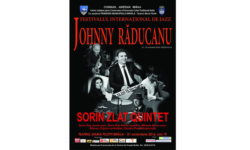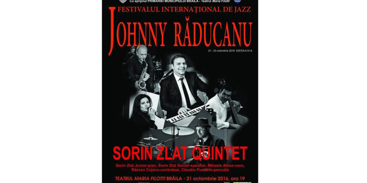 Începând de astăzi, 21 octombrie şi până duminică seara, în superba sală a Teatrului “Maria Filotti” se va desfăşura, începând cu orele 19.00, cea de a IV-a ediţie a Festivalului Internaţional de Jazz “Johnny Răducanu”. După cum v-am mai informat, după concurs, în prima seară de recital, scena îi va aparţine lui Sorin Zlat, alături de colegii săi din Sorin Zlat Quintet: Mihaela Alexa-Voce; Sorin Zlat Sr.-Saxofon; Răzvan Cojanu-Contrabas şi Claudiu Purcărin-Tobe.