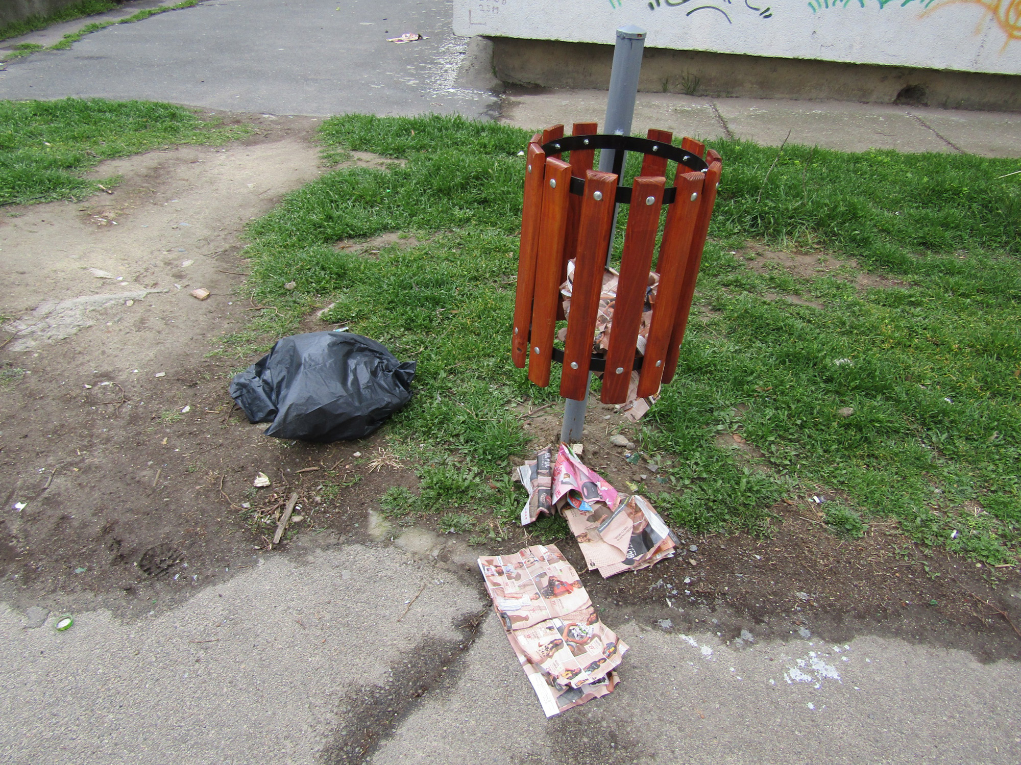 * după ce că în multe zone din oraș acestea sunt puține sau chiar lipsesc cu desăvârșire, acolo unde totuși Primăria amplasează modele noi și cu aspect mai modern apar imediat vandalii care le distrug, fie pentru a fura componente metalice sau din lemn, fie pur și simplu, ca distracție