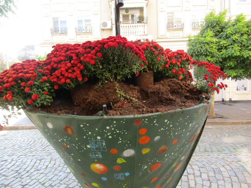 • florile de toamnă plantate de Seroplant în jardinierele de pe această stradă dispar una câte una
