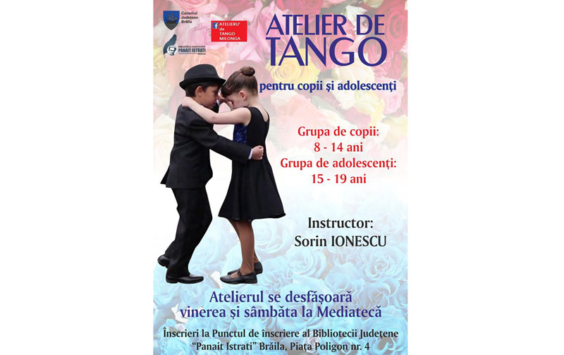 Incep穗d din 9 martie 2018, Biblioteca Judeţeană 捻anait Istrati・ Brăila organizează Atelierul gratuit de Tango Argentinian, care se va desfăşura 絜 fiecare vineri, de la ora 17.00. Cursul este coordonat de instructorul Sorin Ionescu şi se adresează copiilor şi adolescenţilor care vor să descopere şi să se iniţieze rapid 絜 secretele tangoului.