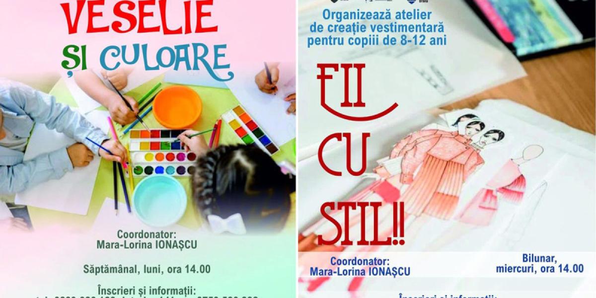 * cursul de pictură se adresează copiilor între 5 și 10 ani, iar atelierul de creație vestimentară celor între 8 și 12 ani