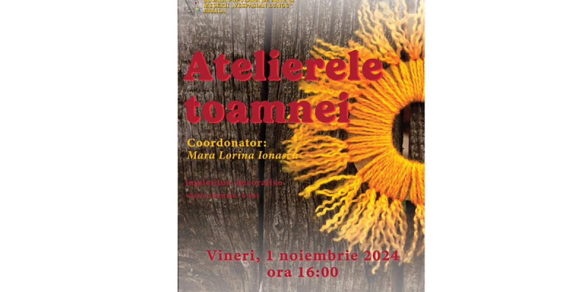 Vineri, 1 noiembrie, de la ora 16:00, la sediul Școlii Populare de Arte „Vespasian Lungu” Brăila, din Centrul Istoric al municipiului (Strada Mărășești nr. 1), are loc ce-a de a doua întâlnire din cadrul proiectului Atelierele Toamnei (coordonator Mara Lorina Ionașcu).