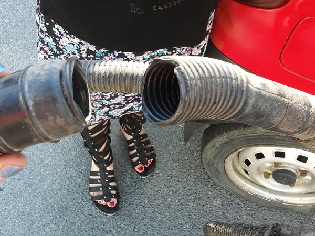 Ajunsă cu autoturismul la service, i s-a explicat clar că acel furtun, deloc subţirel, nu avea cum să se rupă. Şi... surpriză! Cei de la service au spus că toată luna august au tot venit şoferi cu maşinile care prezentau aceeaşi problemă. Punând întrebări în stânga şi în dreapta, şoferiţa a aflat repede că într-adevăr nu e singura furată, dar şi cum procedează hoţii de combustibil, lăsând în urmă pagube de mii de lei. Ana Stroe a scăpat “ieftin”, la ea fiind vorba despre un “Matiz”, paguba a fost de vreo 400 lei (în jur de 4 milioane lei vechi) asta însemnând piesele schimbate, manopera la service, plus cei 15-17 litri de benzină furaţi din rezervor. La maşinile mai mari şi mai scumpe, pierderea trece lejer de o mie de lei.