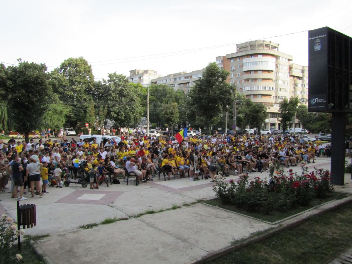 • aproximativ 1.000 de brăileni au urmărit meciul România – Olanda pe ecranul din fața Casei Tineretului • suporterii au trăit intens fiecare moment al partidei • autoritățile locale au organizat ireproșabil acest eveniment