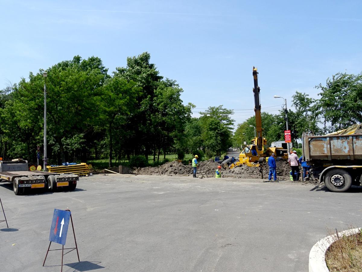 • momentan, se intervine la protecţia conductelor de apă care trec prin zonă • lucrările la suprafaţă ar trebui să înceapă în jurul datei de 28 mai şi nu se ştie când vor fi gata, pentru că nimeni nu se mai hazardează să avanseze un termen