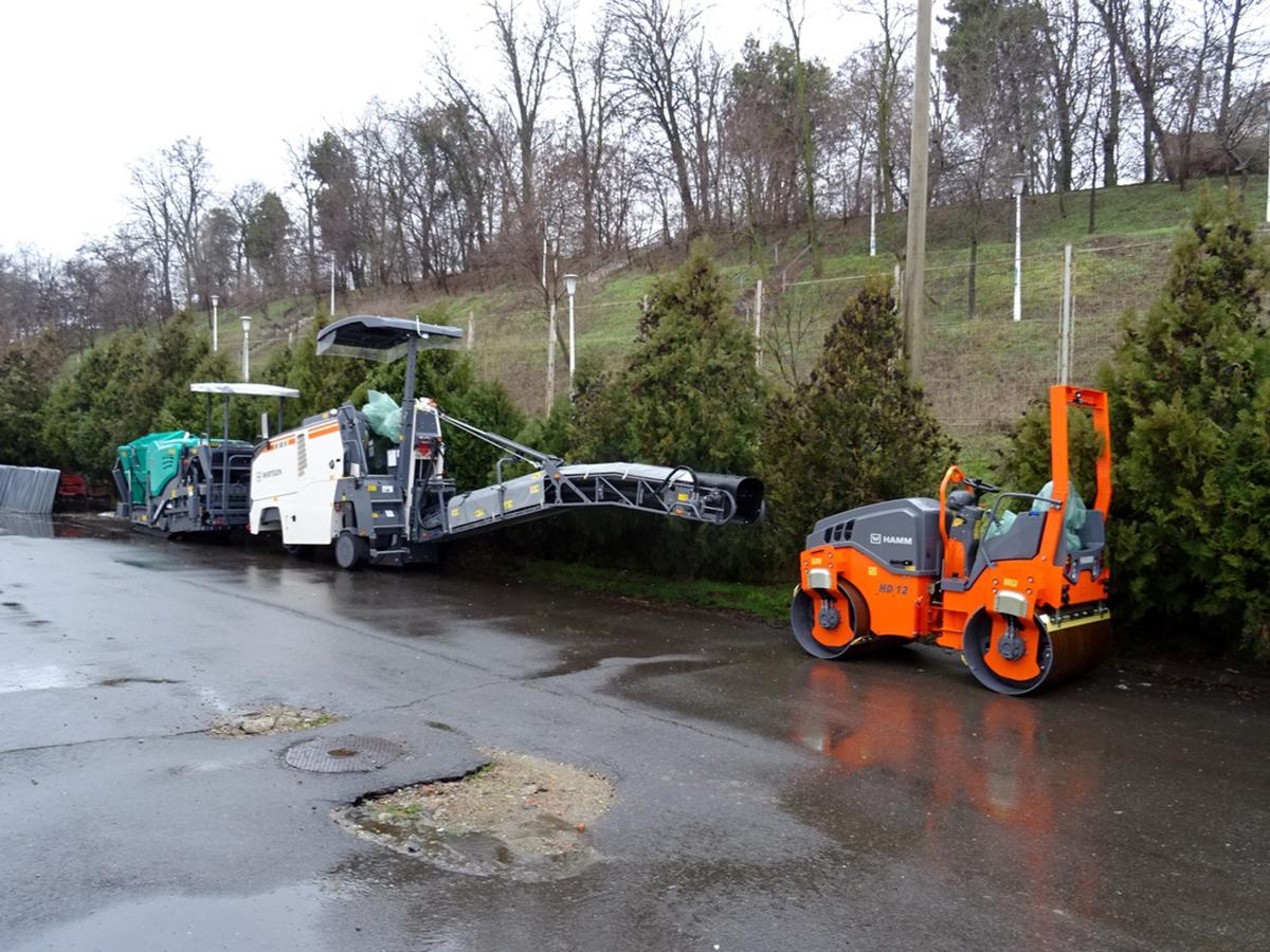 Este vorba despre un autogreder, un rulou compactor, o maşină de frezat asfalt, o maşină de repartizare a mixturii asfaltice, un utilaj pentru amorsare şi un vibrocompactor.