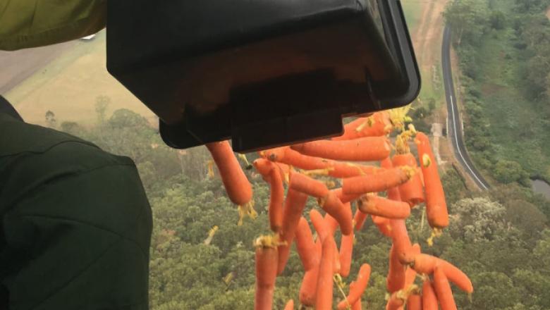 Guvernul a decis să hrănească animalele afectate de incendiile de vegetație din sudul Australiei. Oficialii au aruncat peste 1.000 de kilograme de cartofi dulci și morcovi în zonele populate de animale.