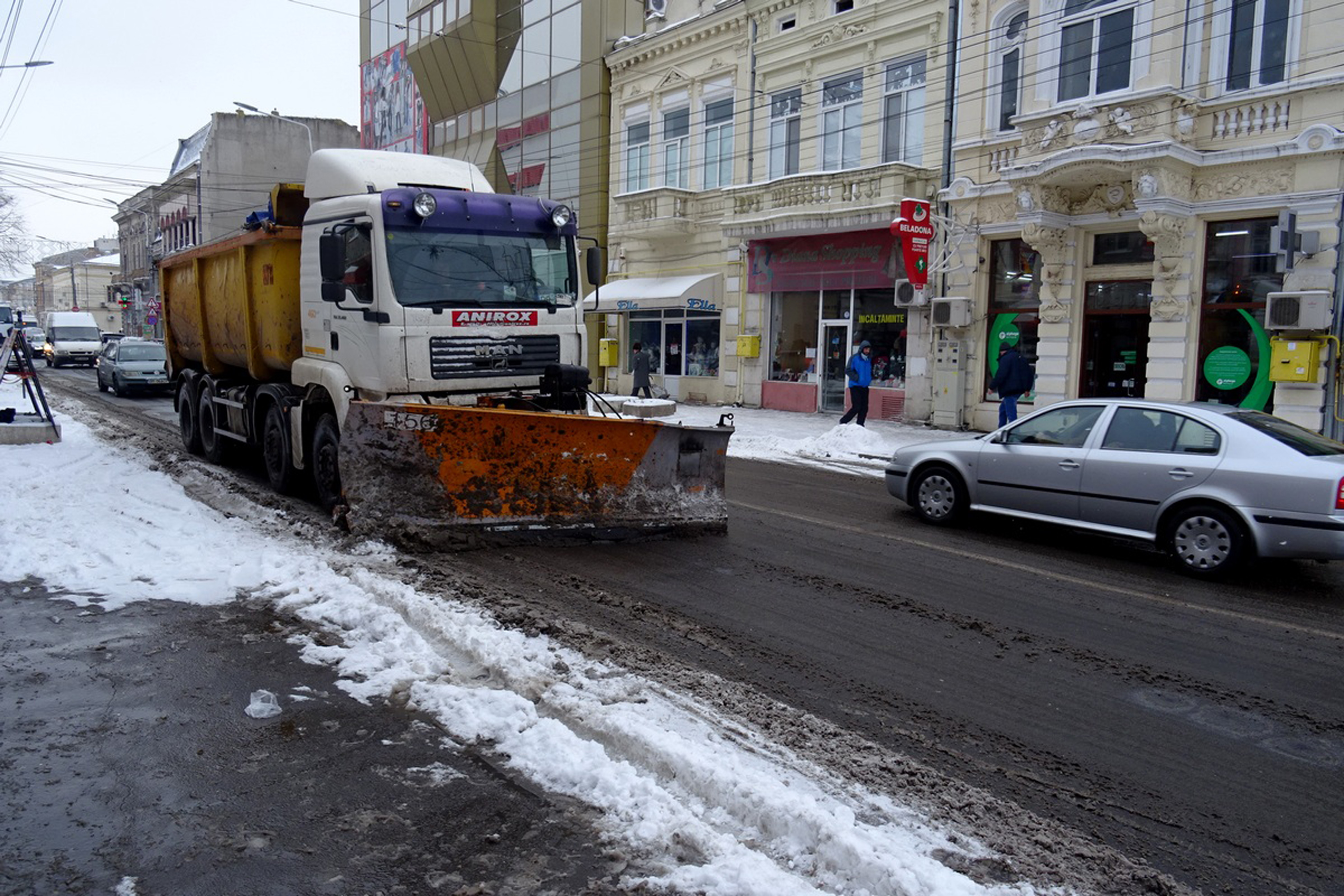 Autorităţile locale brăilene s-au străduit să nu fie prinse pe picior greşit de prima ninsoare ceva mai consistentă din acest an şi, chiar dacă nu s-a depus un strat prea mare de zăpadă pe carosabil, au acţionat, joi, de la primele ore ale dimineţii. Astfel, potrivit conducerii Serviciului de Utilitate Publică, Administrare şi Gospodărire Locală (SUPAGL), utilajele au fost scoase pe arterele principale ale municipiului începând cu ora 4.00. Acestea au acţionat până la 8.30, iar intervenţia lor s-a cunoscut, ieri dimineaţă, deoarece toate arterele intens circulate din Brăila aveau carosabilul “la negru”. Lucrurile nu stăteau la fel de bine, însă, şi în cartierele periferice, unde nu s-a intervenit decât pe câteva străzi, în timp ce pe celelalte zăpada bătătorită le-a cam dat de furcă şoferilor. Ce-i drept, nu a nins atât de mult încât să fie absolut necesară prezenţa utilajelor şi pe străzile mai puţin circulate din municipiu! Cât priveşte arterele importante şi intens circulate din municipiu, lucrurile au stat bine pentru autovehicule. Nu la fel de bine a fost, însă, şi pentru pietoni, din cauza zăpezii apoase adunate în intersecţii şi a băltoacelor formate ca urmare a amplasării deficitare a gurilor de canalizare. Una dintre intersecţiile cu probleme a fost, ca de obicei, cea a bulevardului Dorobanţilor cu strada 1 Decembrie 1918, intersecţie care, deşi a fost reabilitată relativ recent, are de fiecare dată probleme cu scurgerea apei. Când lângă borduri se acumulează şi zăpadă pe jumătate topită, cum s-a întâmplat ieri dimineaţă, problemele se acutizează, spre profunda nemulţumire a pietonilor, cărora le este aproape imposibil să traverseze fără să “ia apă” la bocanci.