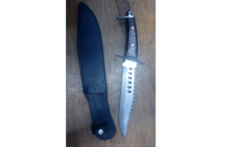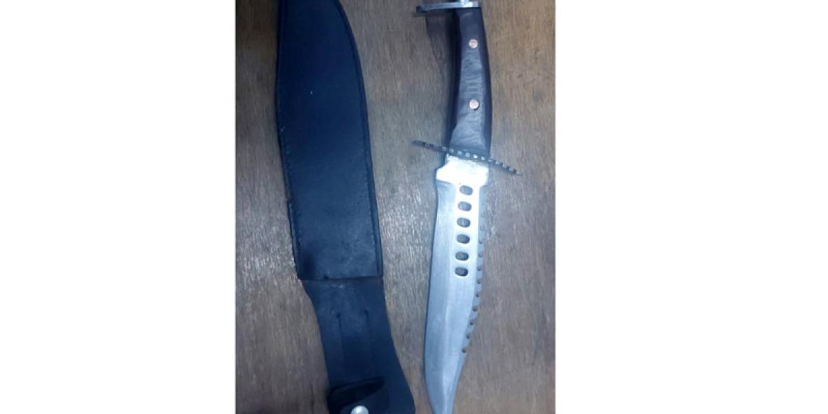 Tânărul a încercat să evite întâlnirea cu jandarmii, întrucât el avea asupra sa un cuțit cu lungimea totală de 34 de centrimetri (din care 21 de centimetri lama și 13 centimetri mânerul), obiect pe care-l purta în buzunarul de la piept al gecii.