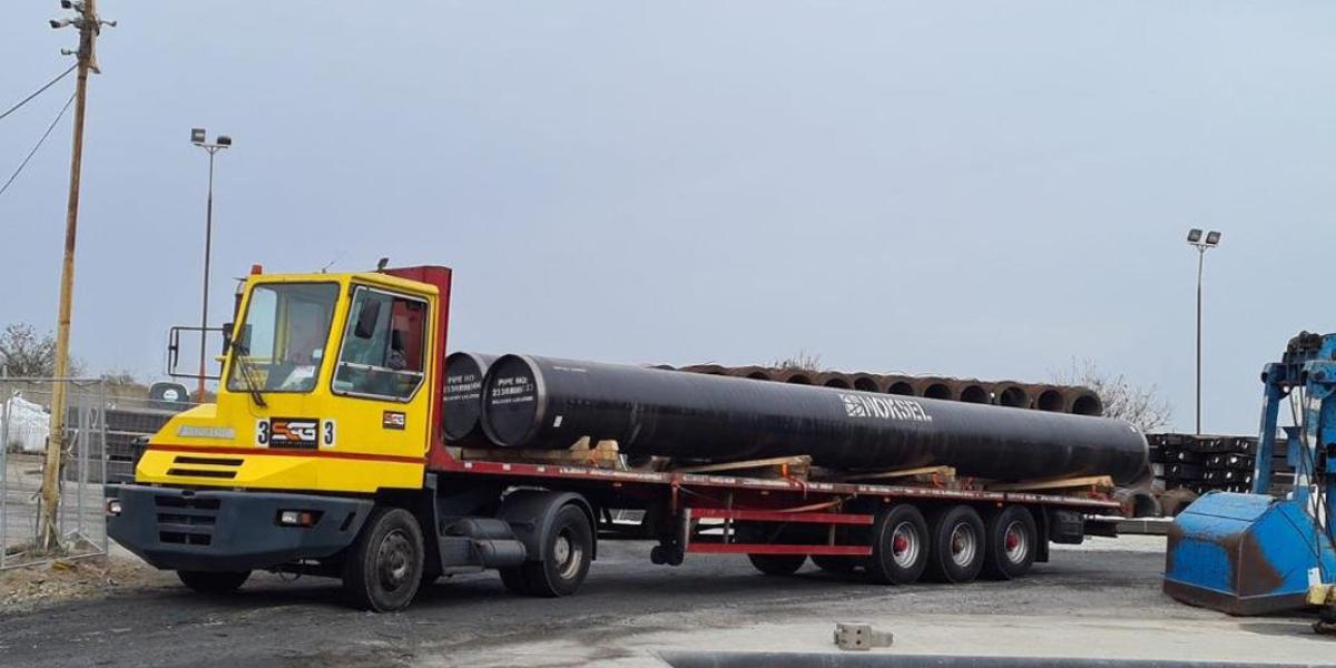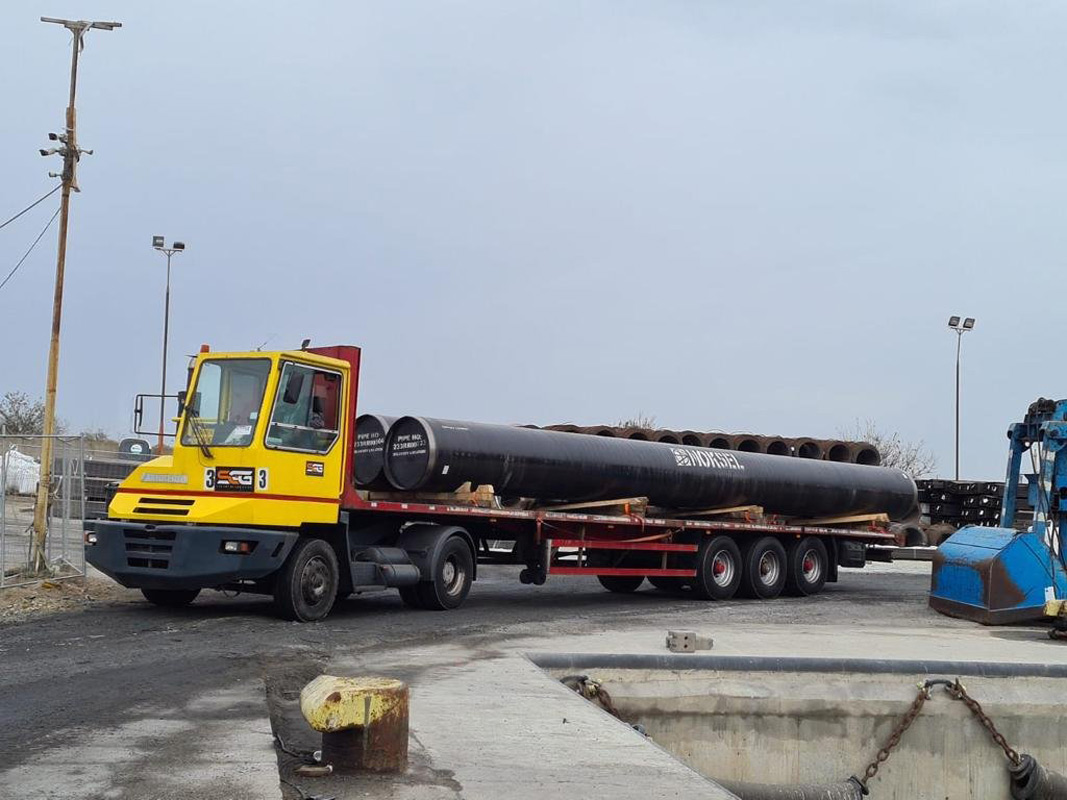 ”După descărcare, țevile vor fi încărcate în camioane pentru a fi transportate pe șantiere, iar în următoarele 10 zile va începe sudarea lor”, potrivit directorului general al companiei Transgaz, Ion Sterian.