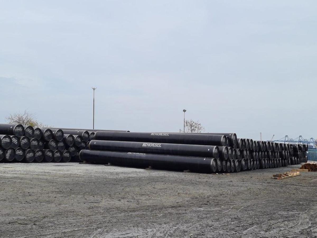 Țevile pentru gazoductul Tuzla – Podișor, produse de turcii de la Toscelik Spiral Pipe, au ajuns în portul Constanța și a început descărcarea celor 8871 metri de țeava 1016,0×12,50 de pe vaporul Joy X., potrivit informațiilor oferite de Transgaz, beneficiarul final al acestui proiect și cel care plătește pentru el.