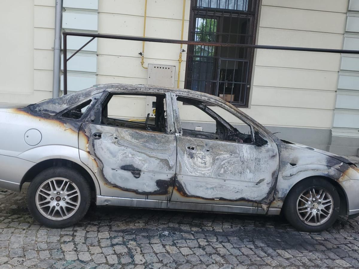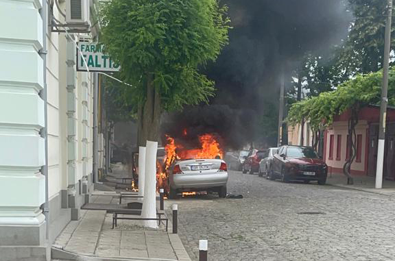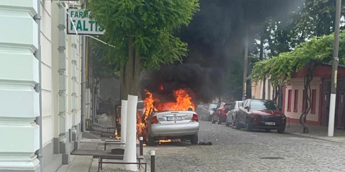 * mașina a luat foc la scurt timp după ce a fost parcată * compartimentul motor și interiorul habitaclului au fost distruse * proprietara autoturismului coborâse cu puțin timp înainte de a se produce incendiul, astfel că nu a fost rănită * a fost afectat într-o anumită măsură și imobilul monument istoric unde își are sediul farmacia ”Faltis” * cunoscutul farmacist Ion Bobaru speră că își va putea recupera pagubele fără mari probleme birocratice de la firma unde este asigurată mașina